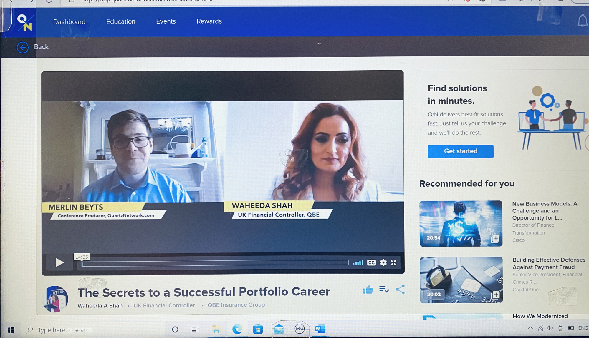 Waheeda is highly regarded as a public speaker and she is often invited to give keynote speeches at High profile events. Most notably, she was recently invited to speak about ‘Digital Transformation’ at the World Finance Forum in Victoria and about ‘The Secrets of a Successful Portfolio Career’ at the CFO Summit in Twickenham Stadium, the home of England Rugby.